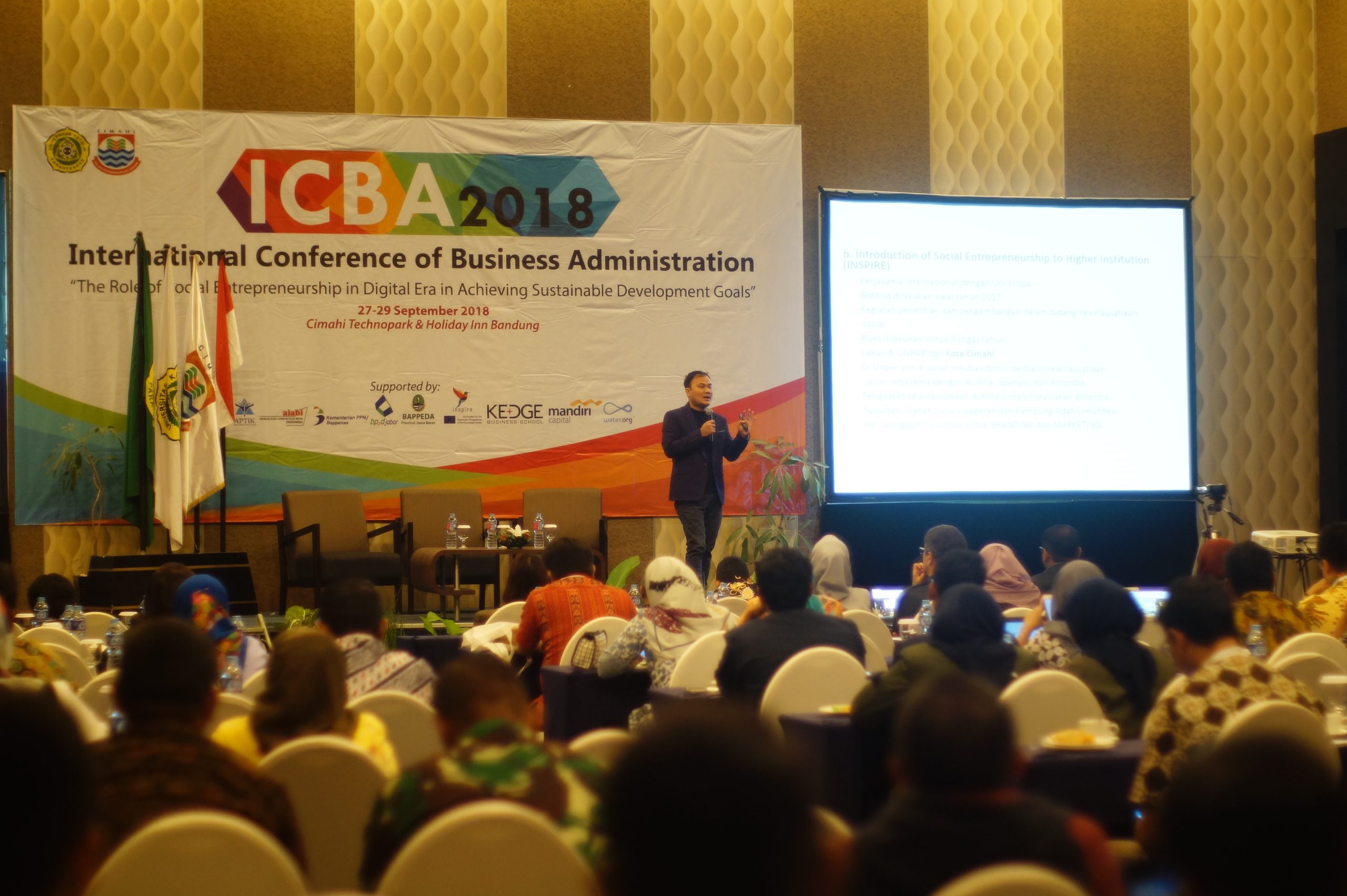 Di hari pertama, ICBA menghadirkan beberapa pembicara untuk membahas masalah ekonomi digital serta kewirausahaan sosial melalui berbagai perspektif (pentahelix) yang dikemas dalam diskusi panel yang dimoderatori oleh Dr. Maria Widyarini (dosen Unpar) dengan pembicara Aldi Surianingrat (water.org) dari sisi pelaku social entrepreneur, Eddi Danusaputro (CEO Mandiri Capital), dan Bapak Arief Setyahadi (Direktur UMKM BJB) dari sisi pemodalan/capital, Lukman Shalahuddin (Kepala BP2D Jabar) dari sisi pemerintah, Julien Hanoteau (Kedge Business School – Perancis) dari sisi akademik, dan Marvin Sulistio (Metro TV) dari sisi media.