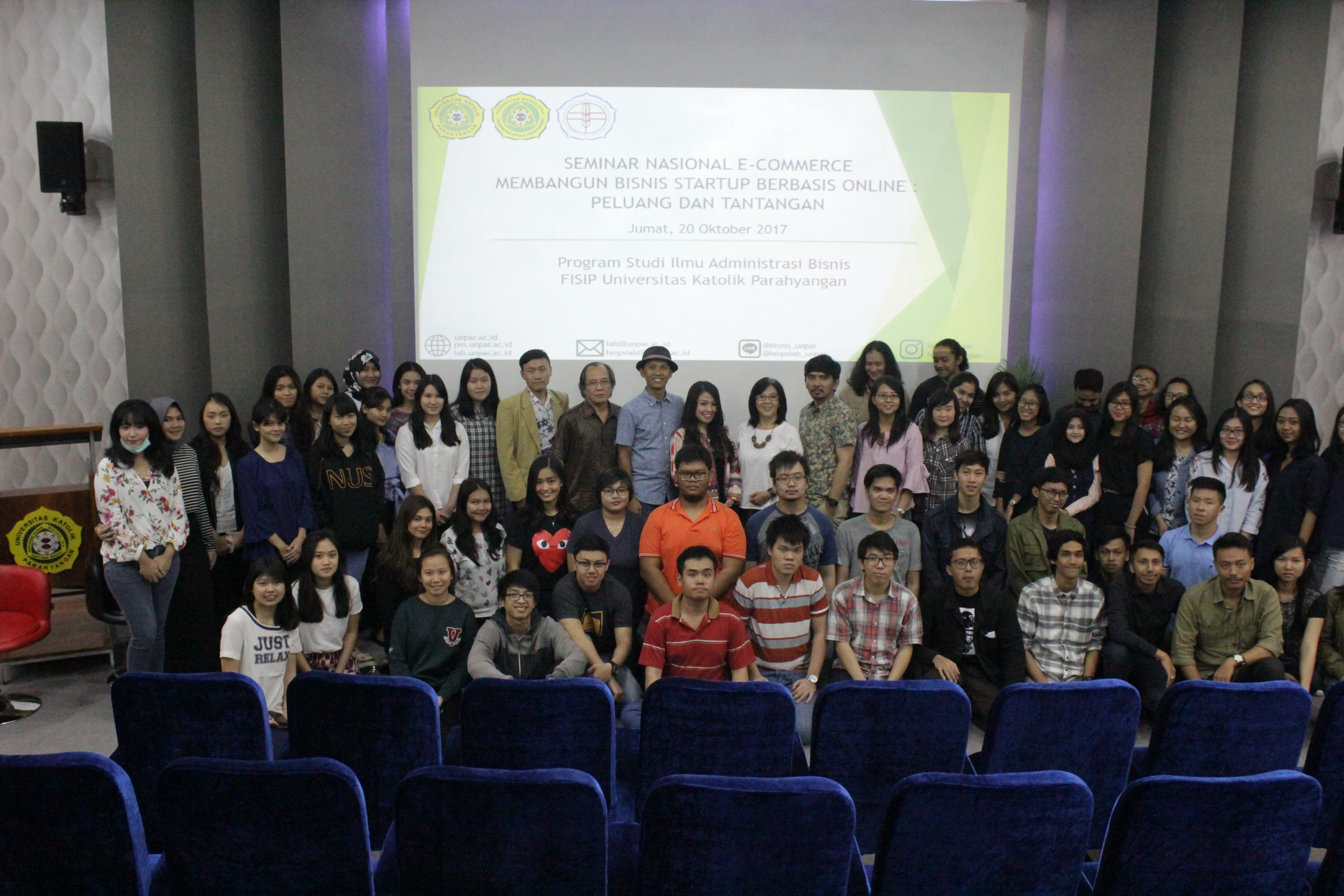 SEMINAR E-COMMERCE- pada tanggal 20 oktober 2017, Dalam membantu menciptakan masyarakat yang siap dengan tantangan bisnis modern, Prorgram Studi Ilmu Administrasi Bisnis Universitas Katolik Parahyangan bekerja sama dengan Himpunan Mahasiswa Program Studi Ilmu Administrasi Bisnis (HMPSIAB) Universitas Parahyangan telah mengadakan seminar dengan tajuk E-Commerce.