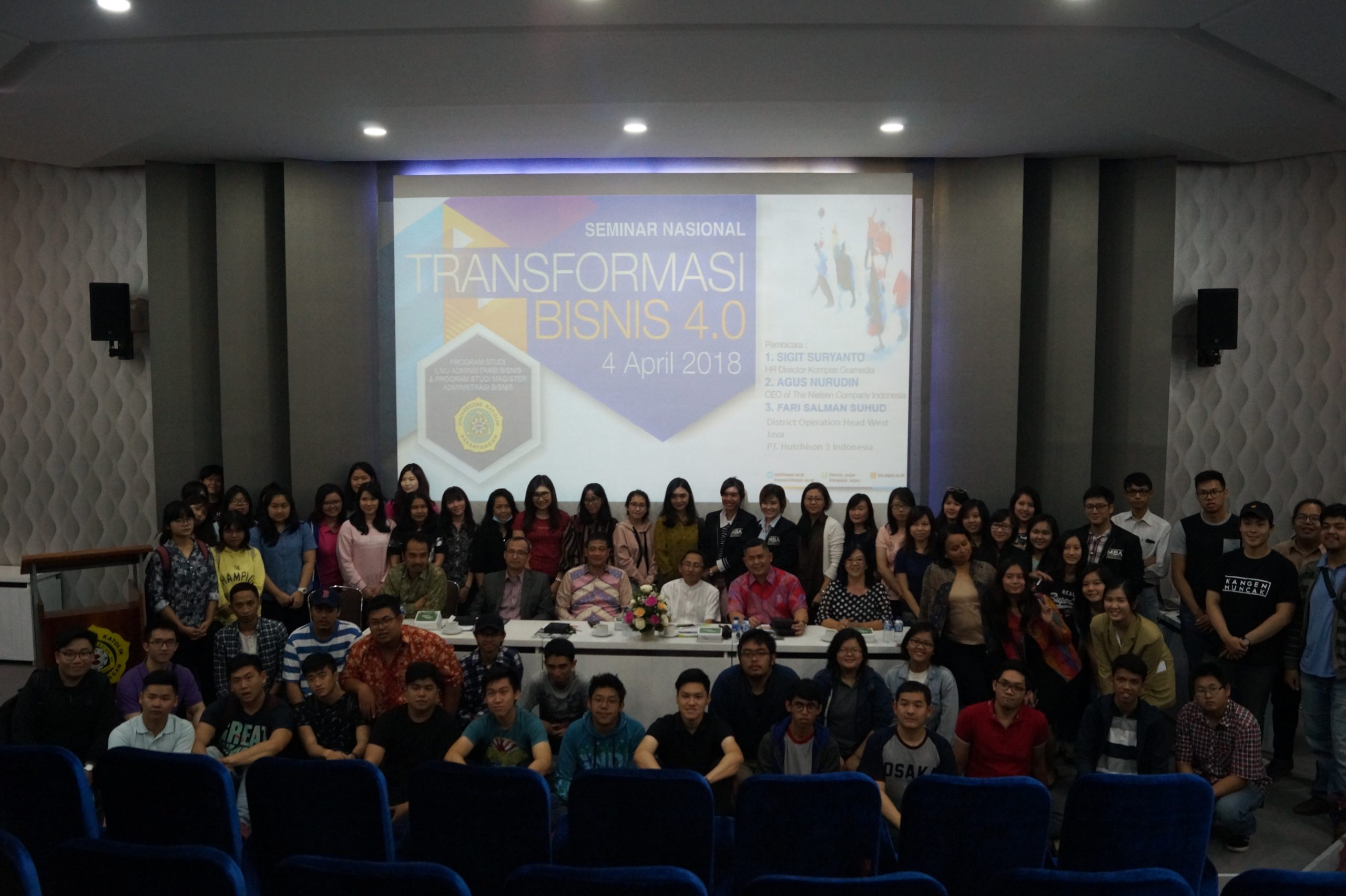 Seminar nasional bertajuk transformasi bisnis 4.0 di kampus Universitas Katolik Parahyangan (Unpar), Ciumbuleuit, Bandung menghadirkan tiga narasumber yang berasal dari beragam industri. Sigit Suryanto, HR Director Kompas Gramedia menyampaikan tidak hanya media saja yang harus bertransformasi di era digital ini, tetapi retail and publishing (ritel dan penerbitan) pun harus ikut bertransformasi. Agus Nurudin, CEO of The Nielsen Company Indonesia mengungkapkan pentingnya pengumpulan data yang tepat dan pengolahan data di era digital agar perusahaan dapat terus bersaing. Fari Salman Suhud, District Operation Head West Java PT. Hutchison 3 Indonesia juga turut memaparkan peran telekomunikasi di era digital ini dan bentuk transformasi yang sudah dilakukan.