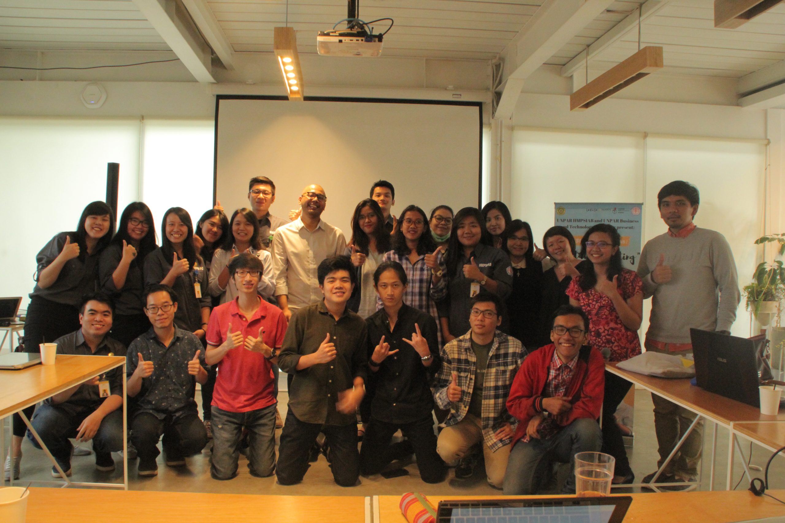 Perkembangan teknologi digital di dunia bisnis membuka berbagai peluang dan tantangan bagi pemilik bisnis yang ada dewasa ini. Himpunan Mahasiswa Program Studi Administrasi Bisnis, FISIP Universitas Katolik Parahyangan bekerja sama dengan Inkubator Bisnis dan Teknologi UNPAR mengadakan Workshop Digital Marketing dengan tema “Demand Validation and Bootstrapping Workshop” di lo.ka.si Coffee and Space, Jln. Ir. H. Djuanda No. 92 Bandung, Sabtu (28/04/18).